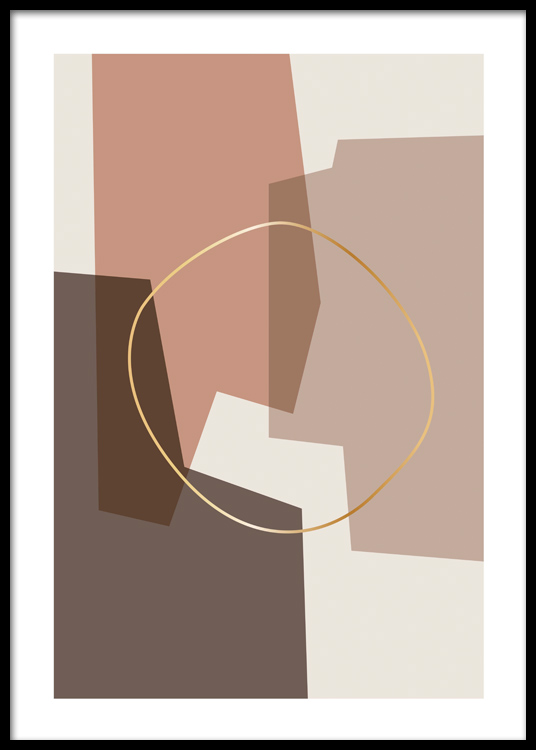 Handpicked Grafische Illustration mit abstrakten Formen in Beige und Hellrot mit einem goldenen Kreis in der Mitte (keine Goldfolie). Die Kombination von weichen und neutralen Farben mit einem Hauch von Gold macht dieses Poster perfekt für ein bodenständiges Zuhause.