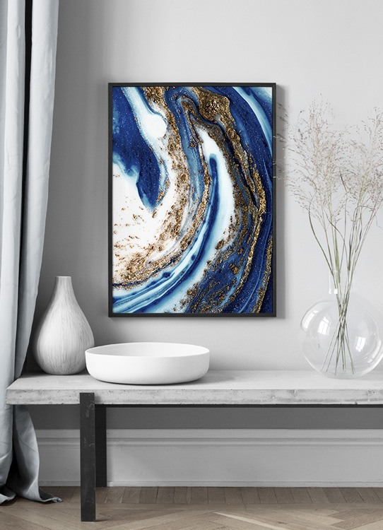 Blue and Gold Swirl No1 Poster in der Gruppe Poster / Kunstdrucke / Malerei bei Desenio AB (14201)