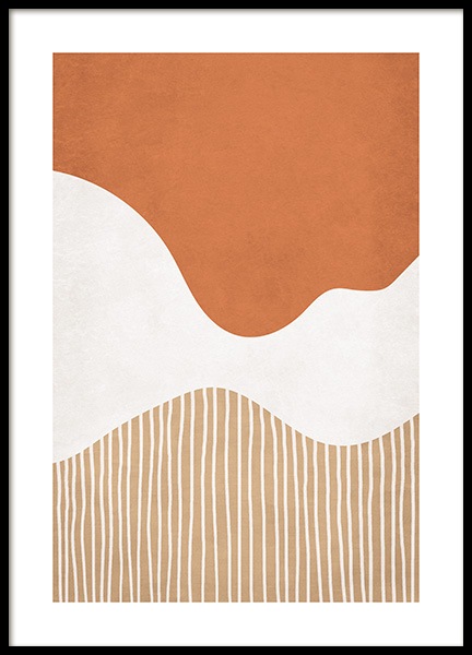 Handpicked Grafische Illustration eines Regenbogens in Rot und Beige mit goldenen Linien (keine Goldfolie) zwischen den Farben. Dieses lustige, farbenfrohe Poster passt genauso super ins Schlafzimmer wie ins Wohnzimmer, und zusammen mit einigen anderen grafischen Illustrationen kannst du eine schöne Bilderwand gestalten!
