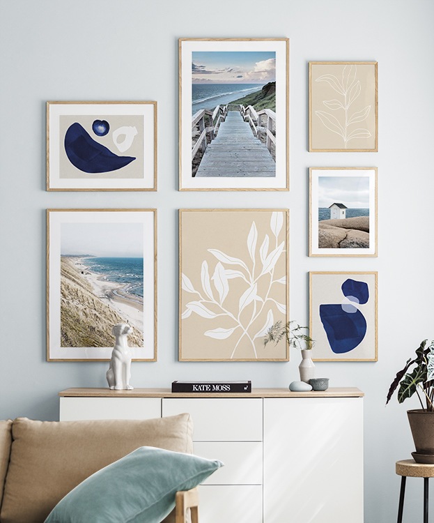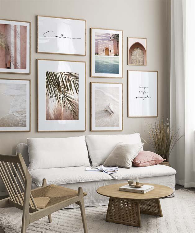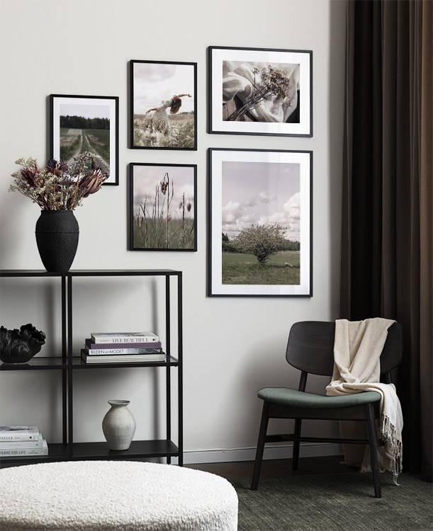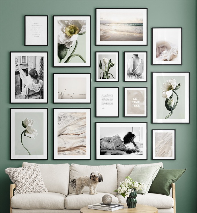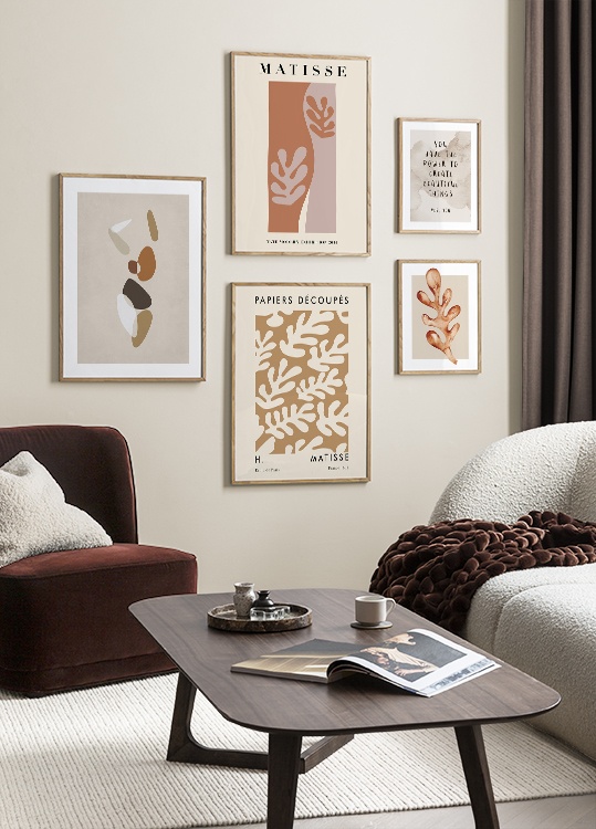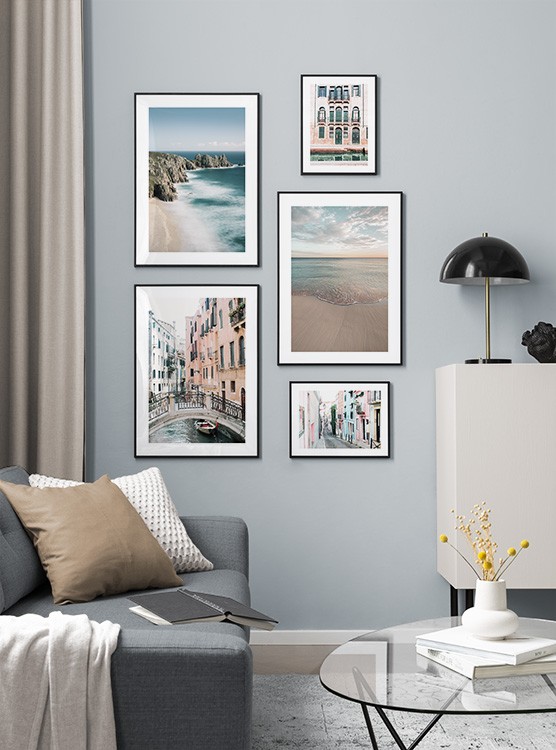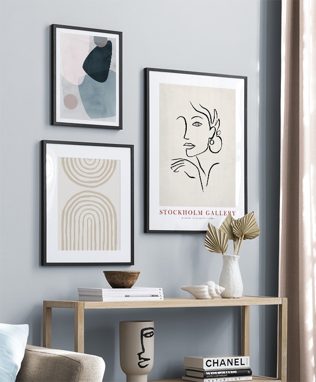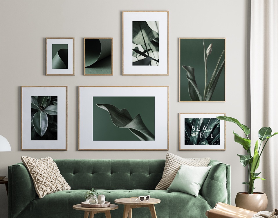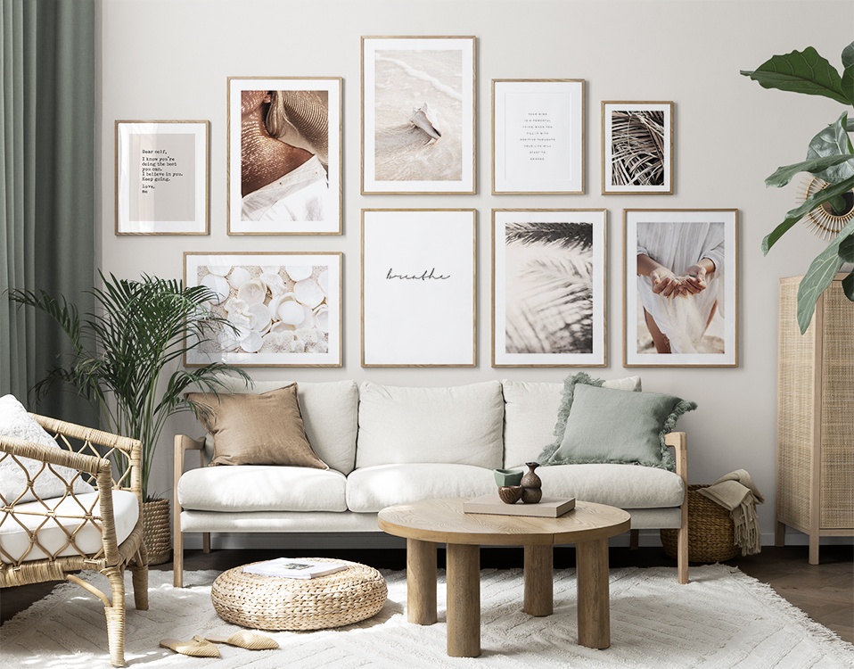 Trouvez l'inspiration et des conseils de décoration pour le salon sur la façon dont vous pouvez orner les grands murs du salon avec des tableaux et des décorations murales. Le salon est généralement la plus grande pièce de la maison et ses murs spacieux sont parfaits pour accueillir une composition de tableaux expressive et élégante. N’hésitez pas à utiliser des affiches de différentes tailles et formats pour composer un mur de tableaux ludique et vibrant et qui reflète votre personnalité.