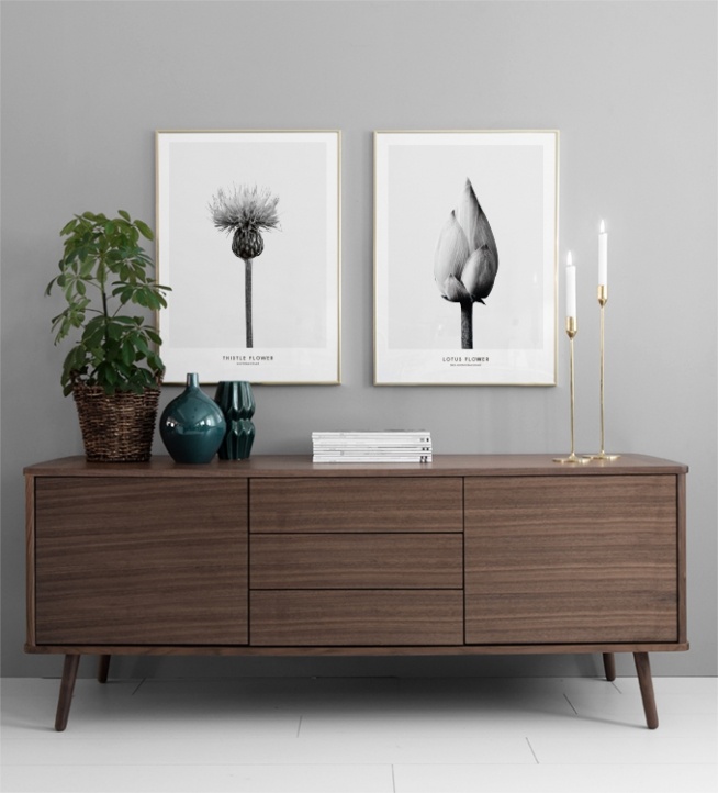 Affiche photographique noir et blanc, motif botanique. Affiche représentant une fleur de chardon sur fond gris à bordures blanches. Associez ce poster à d’autres affiches de la même série, par ex. Fleur de lotus. Superbe photographie qui s'intègre à de nombreux intérieurs. Affiche imprimée sur du papier mat non couché de qualité supérieure. Cadre non inclu, peut être commandé séparément sur notre site, disponible en noir ou blanc. Passe-partout inclu qui entoure joliment le motif.