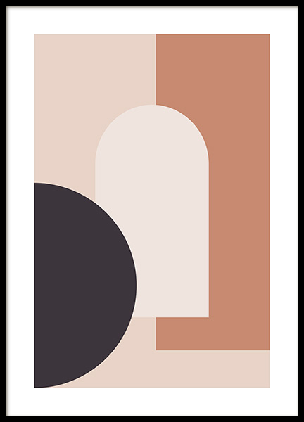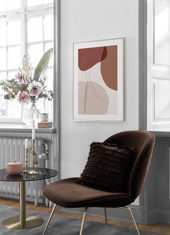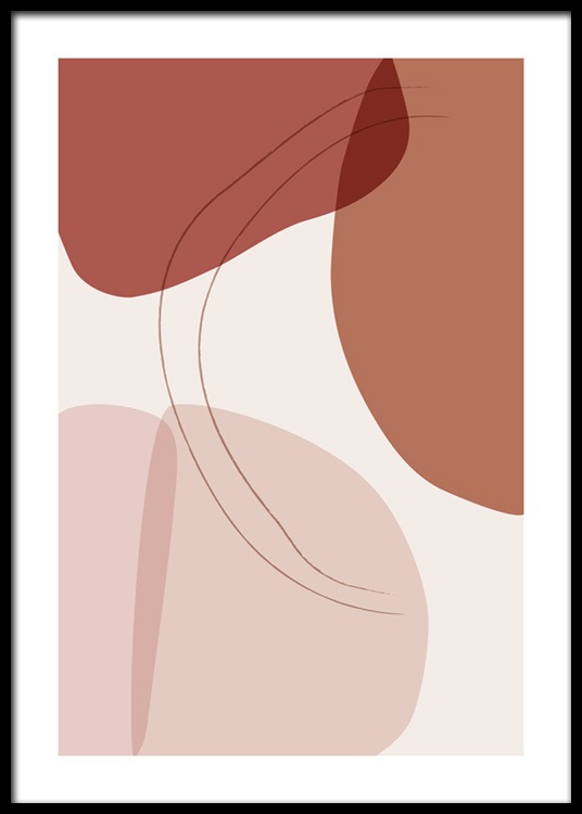 Illustration graphique avec des formes abstraites et des lignes en rose et rouge sur fond clair. L'art abstrait peut être placé dans n’importe quelle pièce, et il y a un large éventail de différents styles et couleurs afin de s’adapter au goût de chacun. Lt;br.gt;lt;br'gt;L'affiche a une monture 'intégrée' qui encadre élégamment l'image.