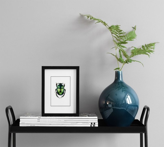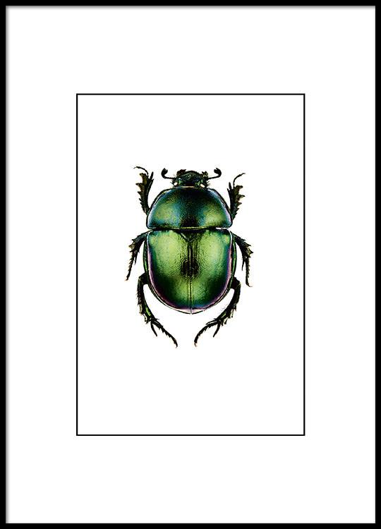 Posters et affiches avec insectes, petite affiche avec scarabée vert