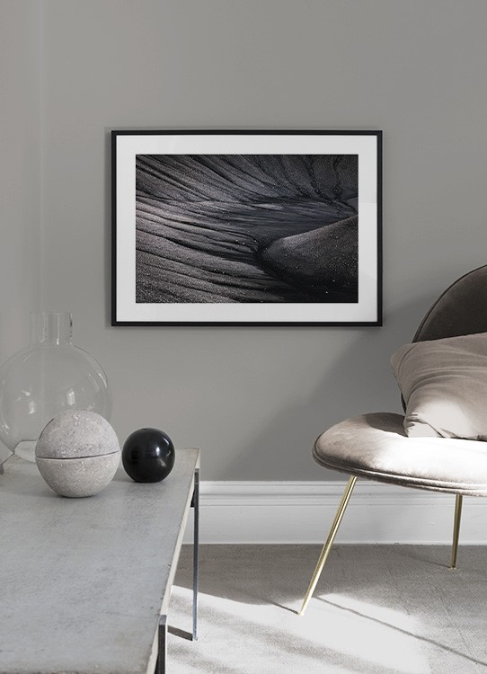 Photographie d’un cratère volcanique noir. Les affiches dans des teintes plus foncées ajouteront un impression de profondeur à votre lieu de vie et le rendront plus dimensionnel. Associez le motif à plus d’art photographique de notre catégorie Nature !