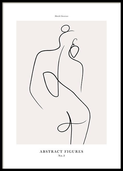 Handpicked Abstracte line art van een lichaam in zwart op een beige achtergrond, met tekst aan zowel de boven – als onderkant. Als je wilt zorgen dat je huis bij blijft met de trends, is line art een must have! Combineer deze poster met Abstract Figures No2 of Abstract Figures No3 voor een perfect paar.