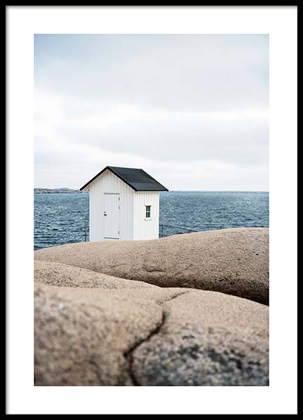 De poster is gedrukt met een witte rand die het ontwerp mooi inkadert.