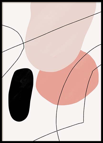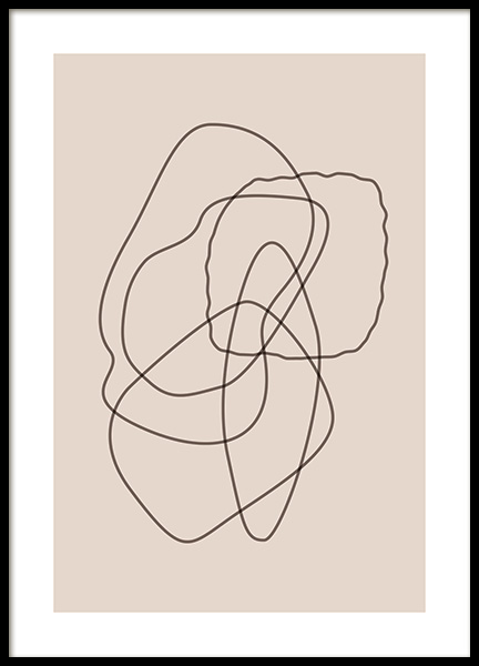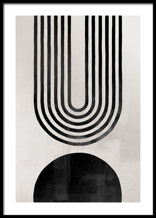 Handpicked Grafische illustraties met zwarte lijnen die een ondersteboven boog vormen met een zwarte figuur eronder, allemaal op een grijs beige achtergrond. De kleurstructuur in deze poster combineert het moderne design met een licht retro-gevoel!