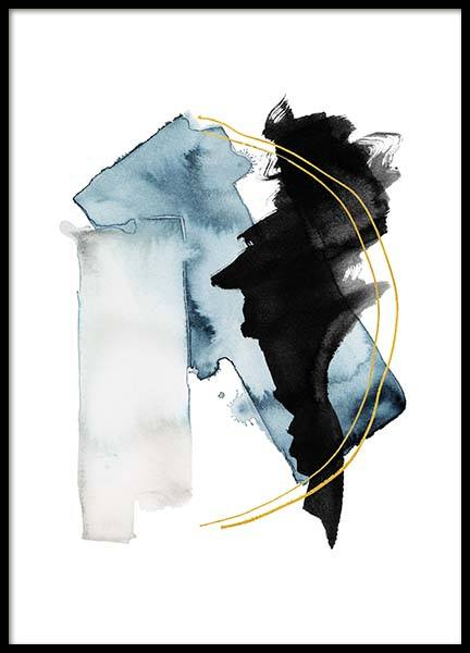 Handpicked Grafische illustratie met scherven in verschillende tinten blauw, van elkaar gescheiden door gouden lijnen (geen bladgoud). Een abstracte illustratie brengt gelijk nieuw leven in je huis en is tevens een moderne touch voor de kamer waar hij hangt. Combineer deze met een paar andere grafische illustraties voor een complete look!