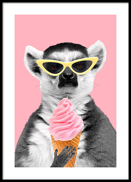 Lemur With Ice Cream Poster