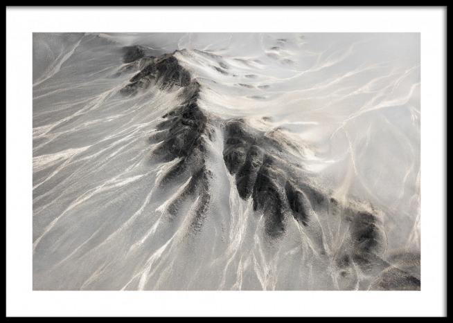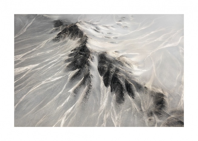 Handpicked Luchtfoto van een bergketen met zwarte toppen en lichtgrijze flanken. Als je van de natuur houdt en je thuis de kalmte ervan wilt voelen, zijn natuurposters een perfecte manier om van je woonruimte je eigen persoonlijke toevluchtsoord te maken.