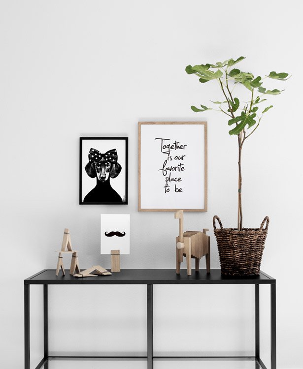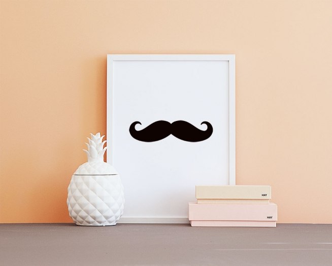 Stijlvolle posters met snorren online, zwart-wit interieur