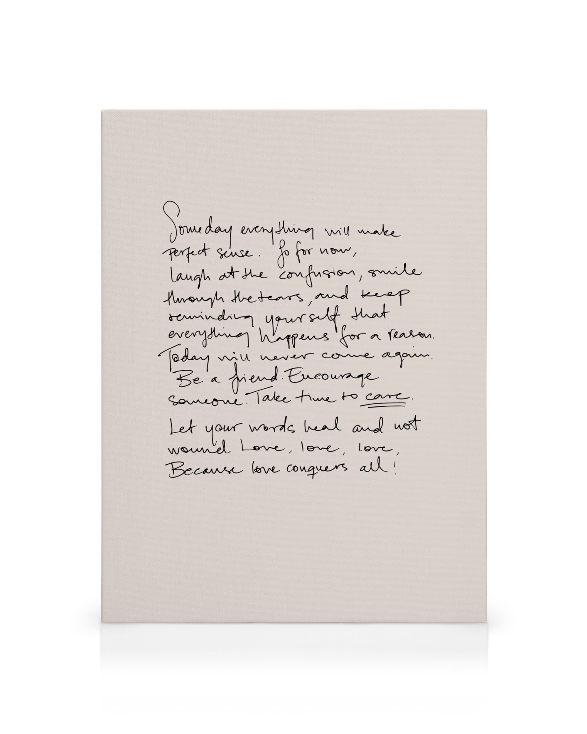 Ab 5,57 €Inspirierende Worte über Liebe, Freundschaft und Ermutigung auf diesem Leinwandbild mit handgeschriebenem Text in Schwarz auf einem hellbeigen Hintergrund. Dieses bedeutungsvolle und ermutigende Wandbild ist perfekt für dein Zuhause oder als durchdachtes Geschenk.