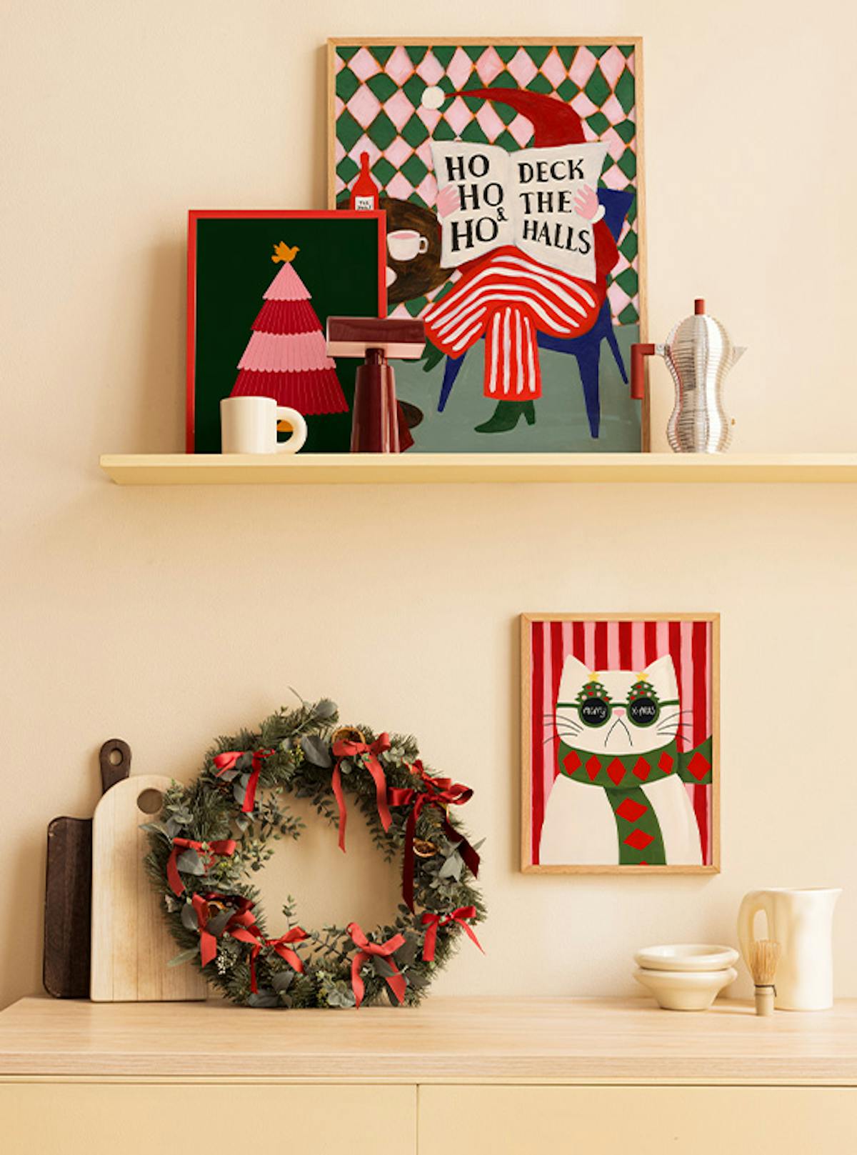 Entdecke verspielte Weihnachtskunst, die mit Fülle und Spaß im Sinn kreiert wurde! Diese Kunst bringt eine Farbexplosion an deine Wände, während die Feiertage beginnen – perfekt, wenn du der festliche Gastgeber bist.