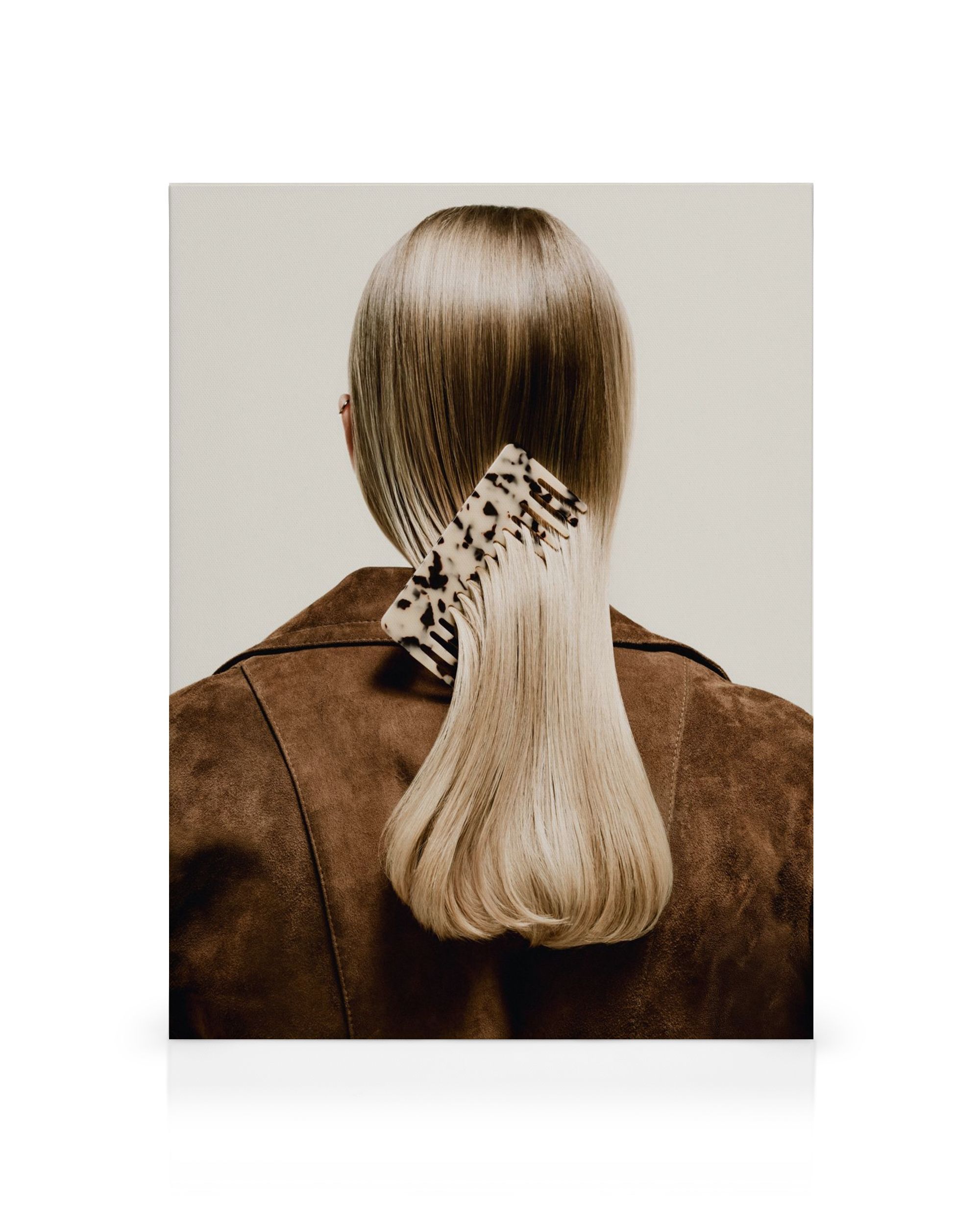 À partir de 24,95 €Une toile représentant une femme aux cheveux blonds et une veste marron. Le fond beige doux crée un beau contraste.