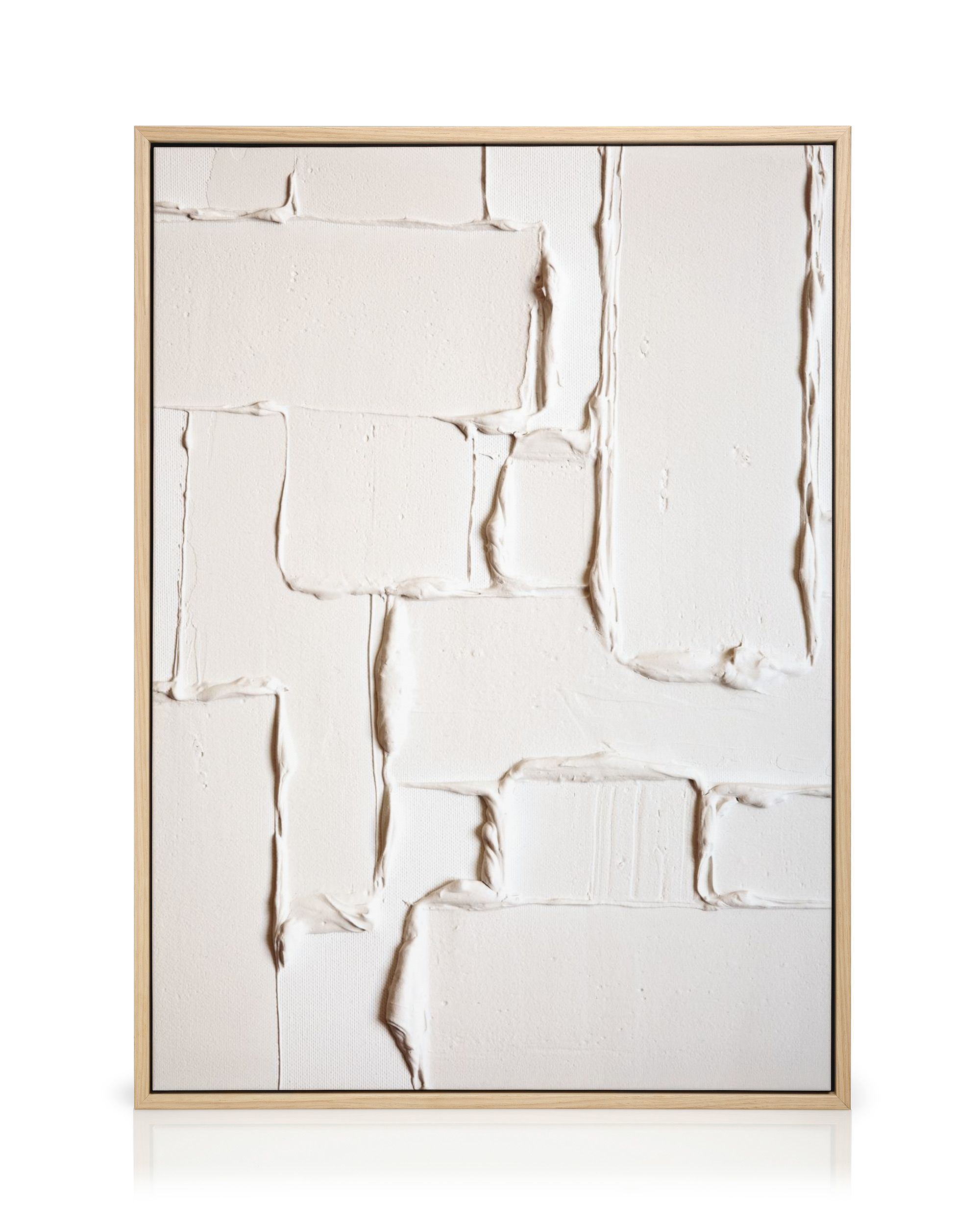 Een prachtige foto wand met drie abstracte schilderijen in neutrale tinten. De zachte aardetonen geven je kamer een rustgevende en moderne uitstraling.
