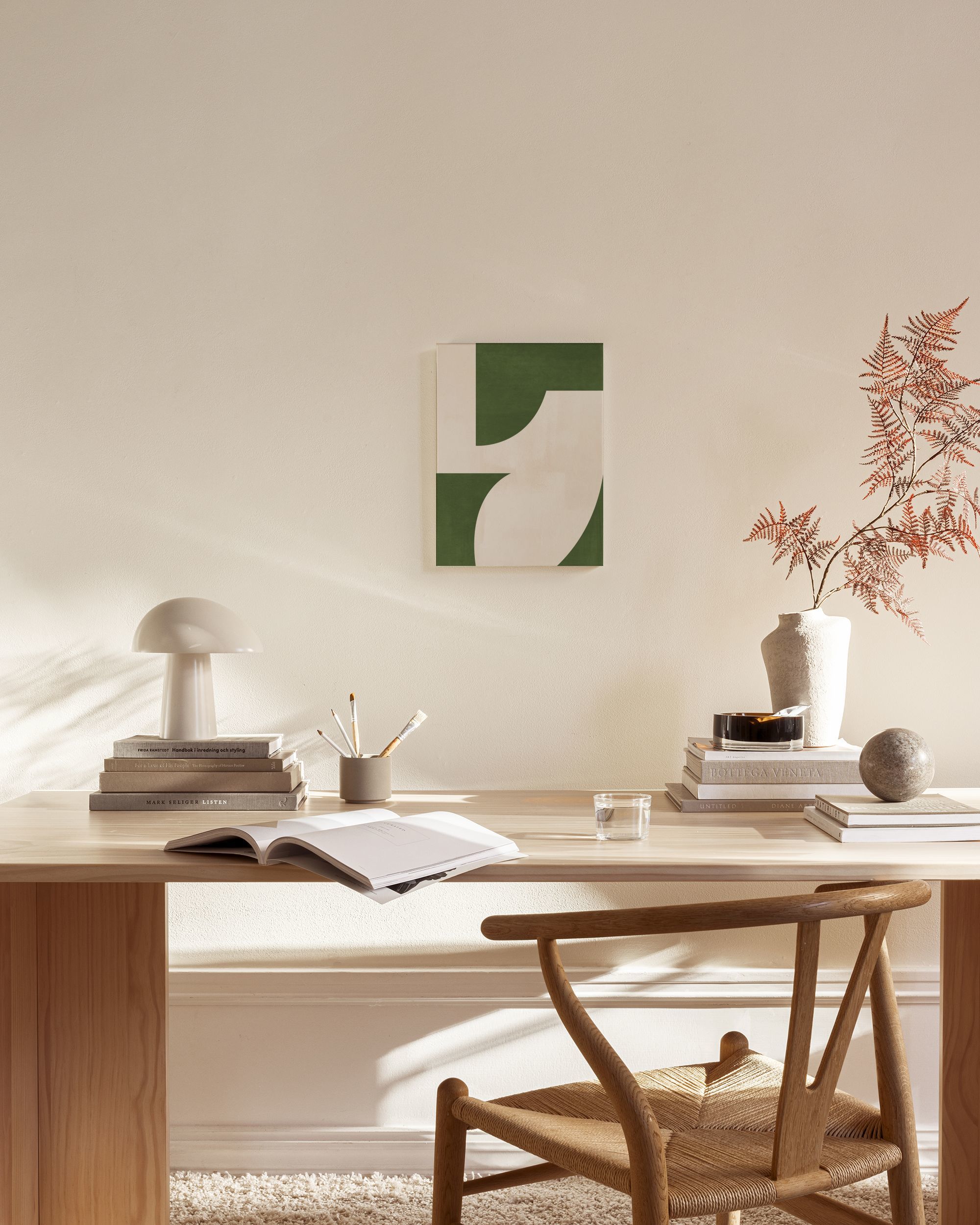 Vanaf € 9,75Een eenvoudig maar opvallend canvas met geometrische vormen in groen en beige. Dit strakke, abstracte ontwerp is perfect om een modern tintje aan je huis toe te voegen.